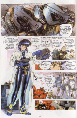 Wie schon gesagt, zeichnet Shirow ein mögliches Bild der Zukunft, keineswegs eine utopische, aber sie ist noch weit vom depressiven Stil von Wiliam Gibsons Neuromancer entfernt. Er überzeichnet seine Figuren nur selten, und wenn, dann meist, um mit kleinen Slapstick-Einlagen den ganzen Ernst hier und da ein wenig aufzulockern. Aber abgesehen davon sind alle seine Figuren durch und durch menschlich, auch und besonders diejenigen, die durch ihre vielen künstlichen Körperteile kaum noch als Menschen empfunden werden. Denn das Handeln der Wirtschaftsbosse, der Politiker, der Kriminellen und aller anderen in der Serie fußt trotz aller High-Tech auf rein menschlichen Empfindungen. Den kalten, perfekten Logikmenschen findet man hier wider Erwarten nirgends.
