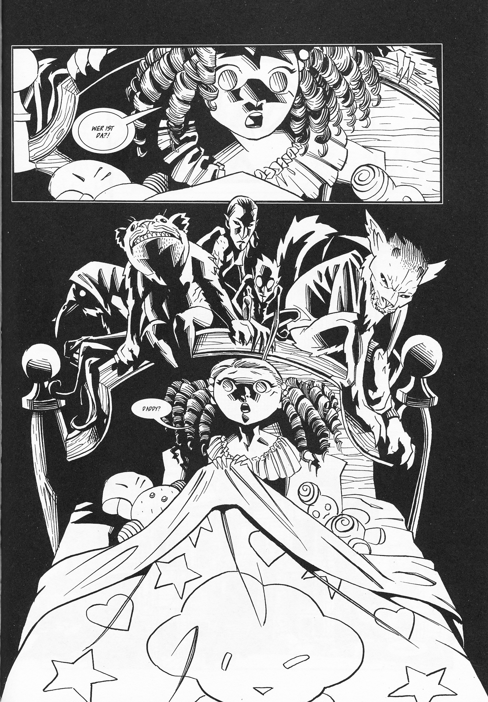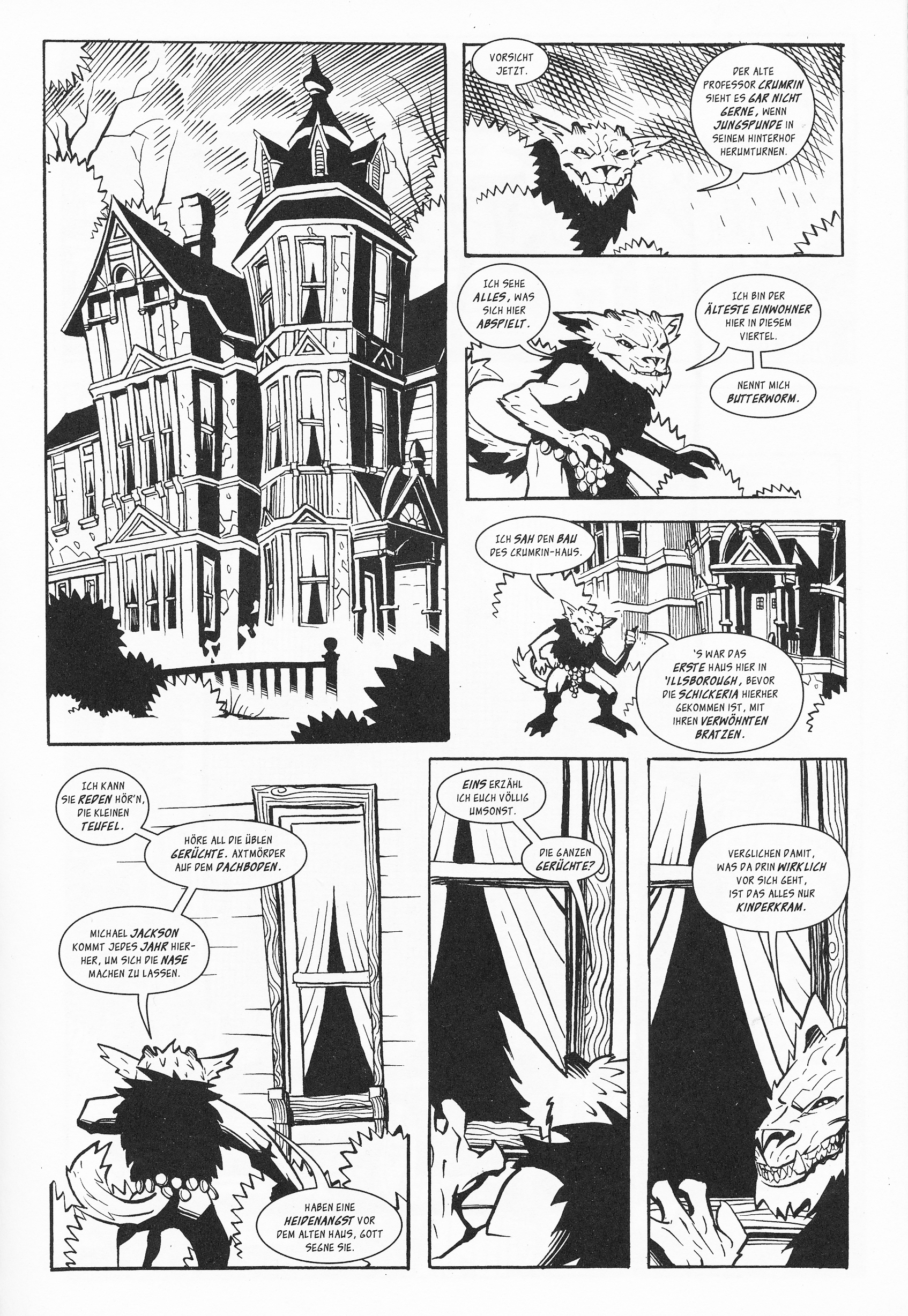Zu Anfang gibt es erst mal viel Altbekanntes. Sowohl die Exposition der Handlung als auch die ersten Auftritte von der elfjährigen Courtney, ihren spießigen Eltern und dem düsteren Onkel wirken allesamt recht vertraut und bringen auch im Zusammenspiel noch nicht viel Reiz. Aber noch ehe man die erste der vier Geschichten des Bandes durch hat, merkt man, wie sich Ted Naifeh mit seiner Erzähl- und Darstellungsweise erfrischend abhebt.