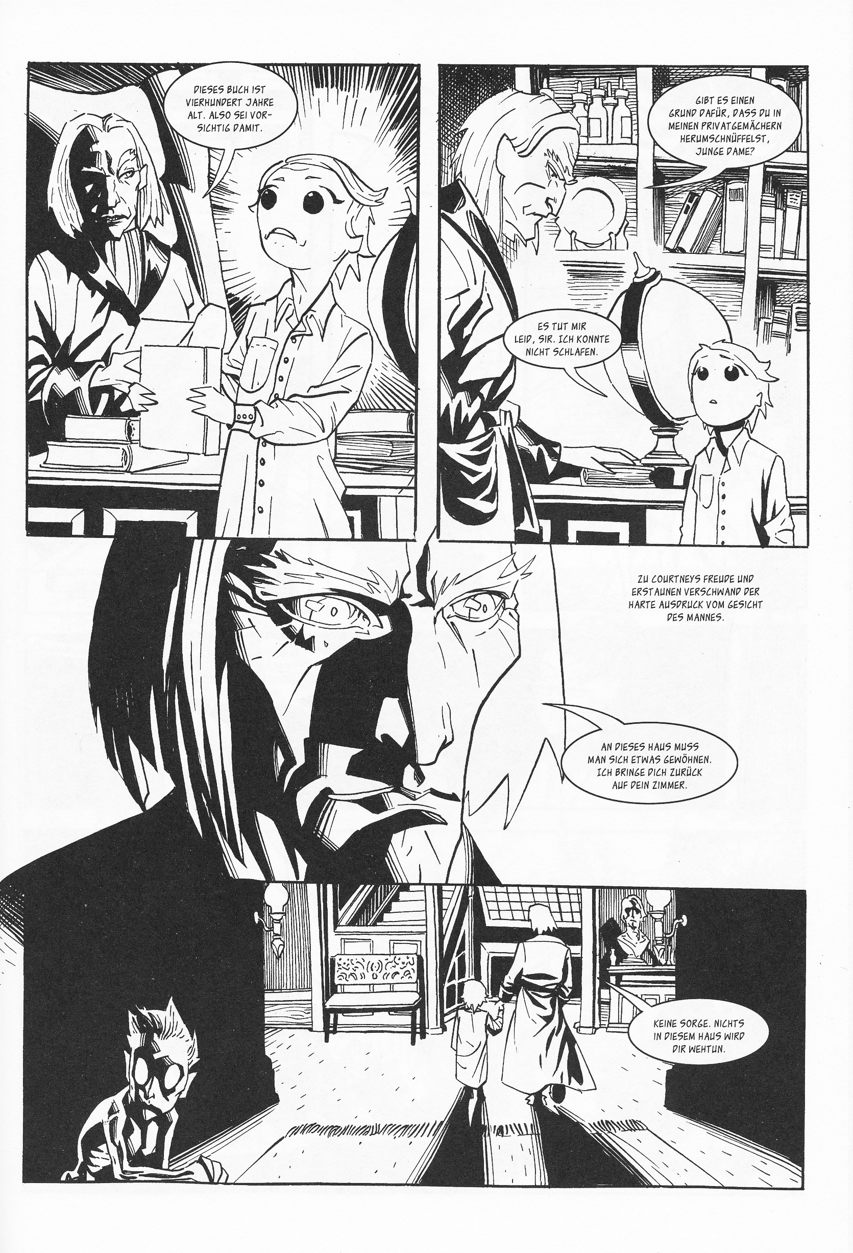 Natürlich erfährt der Leser recht schnell, dass hinter der Fassade mehr steckt. Die Eltern wollen gerne zur Oberschicht gehören und leisten sich daher einen entsprechenden Lebensstil, obgleich es ihre Verhältnisse überschreitet, was sie aber kein Stück symphatischer macht. Der Onkel indes entpuppt sich als recht liebenswerter alter Greis, der so manches okkultes Geheimnis kennt und in einer ominösen Gruppierung Magiekundiger wohl einen hohen Posten bekleidet. Courtney schließlich ist nicht einfach deswegen mies drauf, weil sie es sein will, sondern weil ihre Umgebung respektive Eltern und Mitschüler für einen Menschen mit Verstand einfach eine Qual sind.