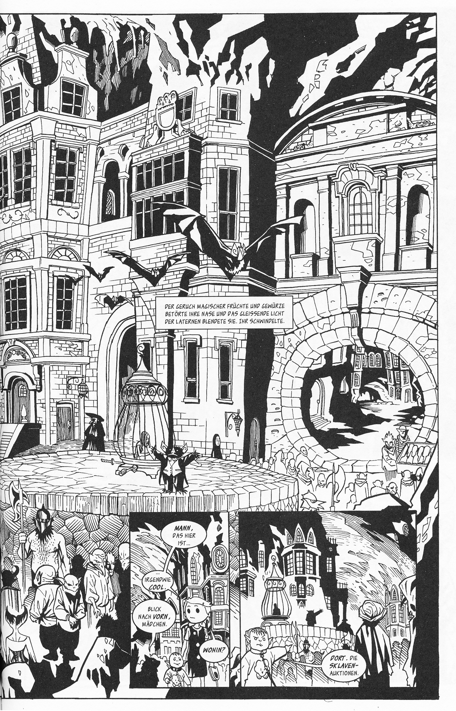 Schon die erste Begegnung mit einem gefrässigen Kobold zeigt, dass hier keine Seite nur blufft. Wo sonst das Erschrecken und Bedrohen meist alles ist, was die Antagonisten anzubieten haben, so werden hier Nägel mit Köpfen gemacht und selbige rollen schon früh. Allerdings geht es hier in keinster Weise um Gewalt, sondern vielmehr sollte man es als eine große Hommage an die Märchen unserer Jugend betrachten. Nicht nur die Grimmschen Märchen waren alles andere als gewaltlos, und schon da waren Kinder die Täter. Natürlich hatten sie einen guten Grund die Hexe zu verbrennen. Aber wo zeigt man heute noch Selbstjustiz als scheinbar legitimes Mittel? Die meisten Erzählungen unserer Zeit versuchen sich hier krampfhaft an eine moralische Grundlinie zu halten, die zwar natürlich wichtig ist, aber in einem literarischen Stück darf und soll man eben auch mit diesen Grenzen arbeiten und dazu muss man sie auch mal überschreiten.