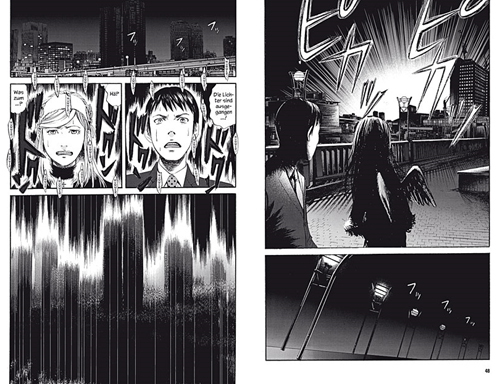 Der Autor folgt einem klassischen und sehr stringenten Erzählmuster. Nachdem das erste große Beben die Protagonisten zusammen mit der ganzen Stadt überraschte, beginnt die Suche nach einem sicheren Unterschlupf, Hilfe und dem langsamen Begreifen, was gerade wirklich passiert ist. Das Tempo ist dabei nicht übertrieben hoch und auch nicht quälend langsam. Hat man den ersten Schrecken noch recht schnell überwunden, dauert das Begreifen und Realisieren des Geschehenen bis zum Ende des dicken Bandes an. Werden Jin und Nanako erst noch mit überfluteten Straßen, verschütteten Menschen und Plünderern konfrontiert, so wirken diese Folgen fast schon banal, wenn man nach und nach erlebt, welche Opfer und wie viel Leid die Überlebenden mit sich herumtragen müssen. Und als sei dies nicht schon genug, kommen durch Nachbeben und Kollateralschäden immer neue Gefahren hinzu.
