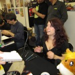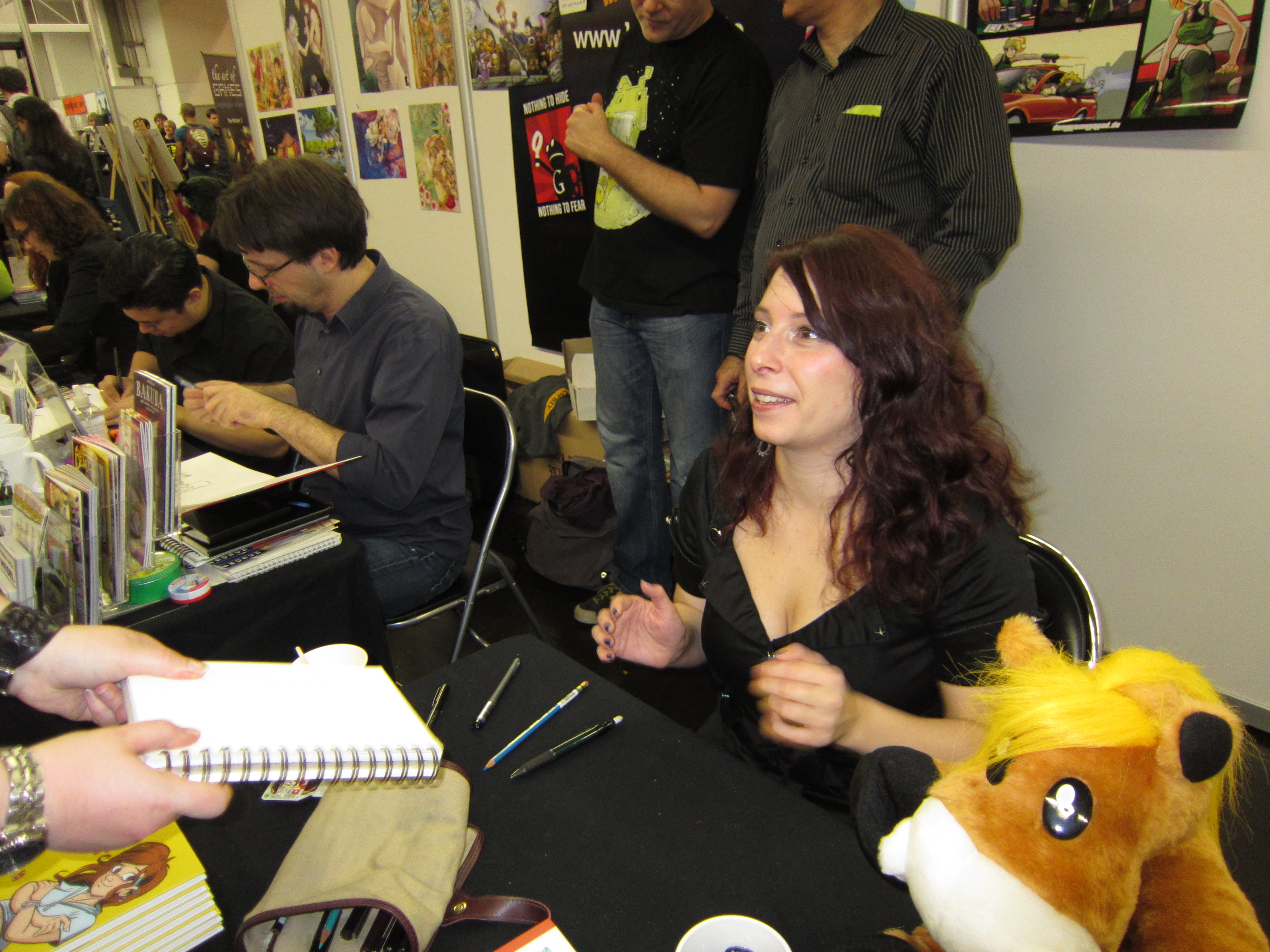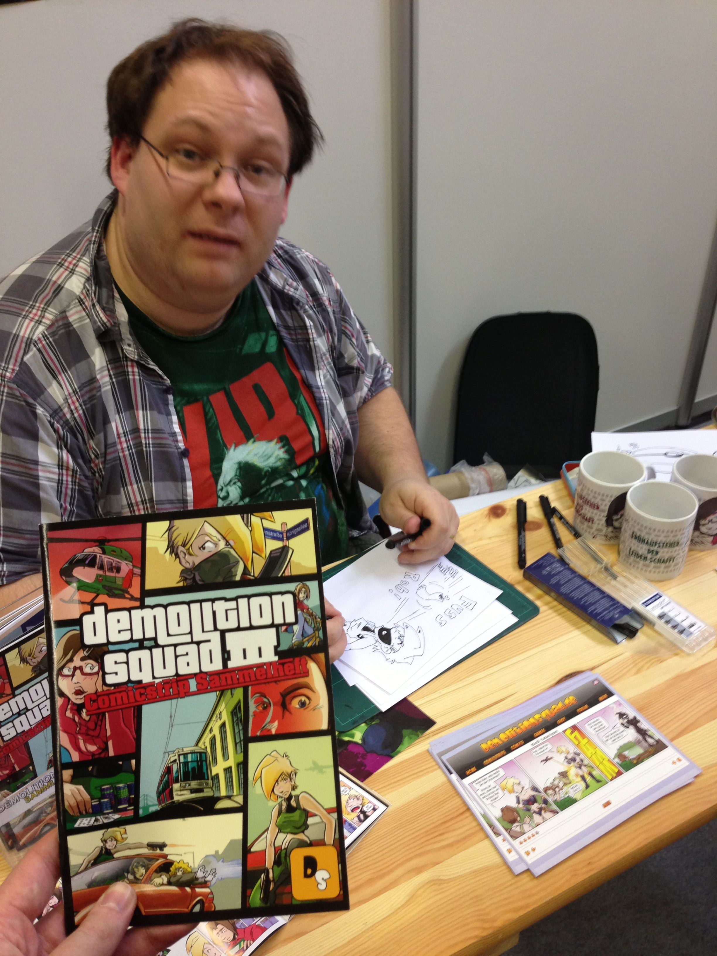 Nachdem die auf der Messe anwesenden Zeichner ihre Eindrücke schon zu Papier gebracht haben und der eine oder andere sich schon auf die Intercomicw am 3.11. in Köln vorbereitet, haben wir an unserer Messenachlesse gearbeitet. Ausnahmsweise spreche ich in diesem Fall bewusst im Plural. Die quirlige Vanessa Drossel hat mich begleitet und ein Praktikum als Kamerakind absolviert.