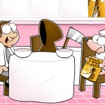 Mir ist jetzt aufgefallen, dass ich bei den Figuren von Tommi Piper, in den späteren Folgen unglaublich viele Pipi-Kaka-Witze habe. Das heißt, man hat diesen über 70 jährigen Mann im Tonstudio stehen und muss ihn ständig irgendwas tun und machen lassen, das irgendwas mit Kaka zu tun hat. Da fühlt man sich schon erst mal etwas schäbig, aber er hat‘s mit Humor genommen, der fand das super.