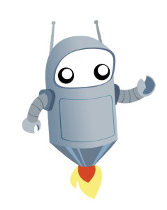 Dann hab ich andersherum überlegt, was könnte denn ein Maskottchen sein? Ein kleiner Dinosaurier? Eine Art Drache? Oder ein Monster? Da bleibt dann aber die Frage was das mit Comics zu tun hat. Sarah hat dann angefangen verschiedene Sachen zu zeichnen und nach vielen Hin und Her fanden wir den Roboter tatsächlich am besten.