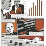 Sprechblasen gibt es im ganzen Buch nicht, jede Szene lebt nur durch ihre Darstellung und Schravens zugehörigem Kommentar, dem man die jahrelange journalistische Erfahrung anmerkt. In wenigen Worten gelingt es ihm Sachlagen, Beobachtungen, Meinungen und hier und da einen gut gesetzten Kommentar unterzubringen. Vincent Burmeister schafft dazu Bilder, die den bekannten Fernsehbildern zwar frappant ähneln, dabei aber durch ihr geschicktes Timing helfen, die verfahrene Lage emotional zu vermitteln. Selbst Szenen die sonst aus eher seichten Unterhaltungsfilmen bekannt sind, werden hier wieder erfolgreich geerdet und besitzen meist einen angenehm bodenständigen Tonfall, ohne gleich in staubtrockenen Lehrbuchjargon zu fallen. Sein holzschnittartig anmutender Stil mag dabei nicht jedem zusagen, besitzt aber oft die wichtigen Details und kann insgesamt als kleiner Preis betrachtet werden, wenn man den endgültigen Eindruck seiner Bilder berücksichtigt.