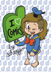 Klein aber fein kommt von Schlogger ihr Heft I ♥ Comics daher. Weniger eine durchgehende Geschichte, schildert sie mit vielen Stil-Anleihen und Querverweisen ihre Entwicklung vom kleinen Küken bis zum vollausgereiften Comic-Nerd. In ihrer typischen Art zeichnet Schlogger ohne Scham von ihren Einflüssen und lässt sich den Leser oft genug selbst erkennen. Und wer manchmal befürchtet, er übertreibe es mit seiner Comicsucht, kann hier beruhigende oder auch beunruhigende Bestätigung finden, wie man’s halt nimmt…