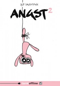 Von Flausen aka Ulf Salzmann ist seit einigen Tagen sein zweites Angstbuch Angst2 erhältlich, wie alle seine Bücher beim Label turmoffline vom Verlag Schwarzer Turm vertrieben. Abgesehen vom matten Einband hat sich wenig geändert im Vergleich zum ersten Buch (eine Rezension des Erstlings gibt es beim Comic-Report). Wieder spielt Flausen verschiedenste Alltagszenen und Gedankenspiele mit der kleinen armen Angst durch. Ergänzt wird die Reihe dieses Mal noch durch Furcht, eventuell einem entfernten Verwandten…