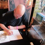 Zurück im Künstlerhaus wurde bei Splitter noch einer der Signiertermine von Ingo Römling zu einem kurzen Plausch mit dem Zeichner von Malcolm Max genutzt. So ließ sich erfahren, dass die von einigen Lesern kritisch aufgefassten Textblöcke, die an manchen Stellen sehr genau den Panelinhalt wiedergeben, bewußt als Stilmittel genutzt wurden. Eine Anlehnung an alte Stummfilme, die sich auch nicht zu schade waren, das Gezeigte nochmals in Texttafeln wiederzugeben um die Dramatik weiter rauszustreichen.