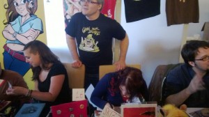 Gerade die Jungs und Mädels von JAZAM und Zwerchfell harrten hier tapfer bis zum Nachmittag aus, während sich tatsächlich noch einige wenige Besucher hierher verirrten. Die geplante Gesprächsrunde über Graphic Novels war schon am Vortag abgesagt worden und die Polizeiabsperrungen machten den Abtransport für die Aussteller nicht gerade leichter.
