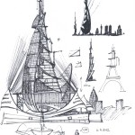 Die detailliert ausgearbeiteten Artworks von Sascha Grusche erinnern nicht von ungefähr an Sic-Fi-Artworks aus den 80ern. Bunte Neonlichter, kalter Stahl und Menschenmengen die auf gewaltigen Straßenzügen wie Ameisenkolonnen wirken. Ähnlichkeiten zu Blade-Runner sind unübersehbar, ohne dass die gesamte Konstellation lediglich wie ein Potpourri typischer Genrezutaten wirkt. Das Artwork fügt sich harmonisch zusammen und kommt nicht als Selbstzweck daher, man kann den Atem dieser Welt spüren wenn man nur die Bilder betrachtet. Diverse Skizzen zur Entwicklung von Gebäuden, Fahrzeugen und den Personen geben einen guten Einblick in die Entwicklung. Auf diese Weise wird sehr schnell verständlich warum in den vier Jahren bisher gerade einmal 31 Seiten entstanden sind.