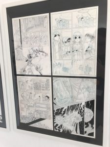 Gerade in der heutigen Zeit, in der so ziemlich jeder kreative Prozess komplett digitalisiert werden kann, ist es immer wieder ein Augenöffner die Originalskizzen sehen zu können. In manchen Fällen sogar noch den Weg von der Vorskizze, über die Tuscheversion bis zur kolorierten Vordruckfassung und als Fazit dann das fertige Erzeugnis. Im Grunde macht diese Faszination fast jede der Ausstellungen auf dem Salon interessant, besonders schmackhaft wird es aber meiner Meinung nach, wenn wie hier mit begrenzten Mitteln aber dafür ohne strenge Auflagen der Inhalt der Ausstellung frei gestaltet werden kann. Vergleichend sieht man in der Doppelausstellung zu Jeff Lemire und Flix zwar auch viele Rohzeichnungen neben den fertigen Printversionen, aber der Weg ist oft ein kürzerer und man spürt eben das Korsett der sorgfältig lektorierten Ausstellung. Ganz anders eben ein Verlag wie Zwerchfell der sich auch mit dreißig immer noch eine jugendliche Freiheit bewahrt hat, die sich für keinen Spaß rund um das Medium Comic zu schade ist.